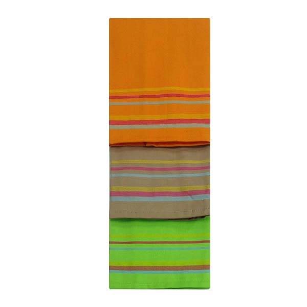 Set 3 pezzi in cotone 100% in tinta unica con righe. Pratici e colorati in cotone di buona qualità, buona assorbenza.