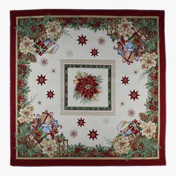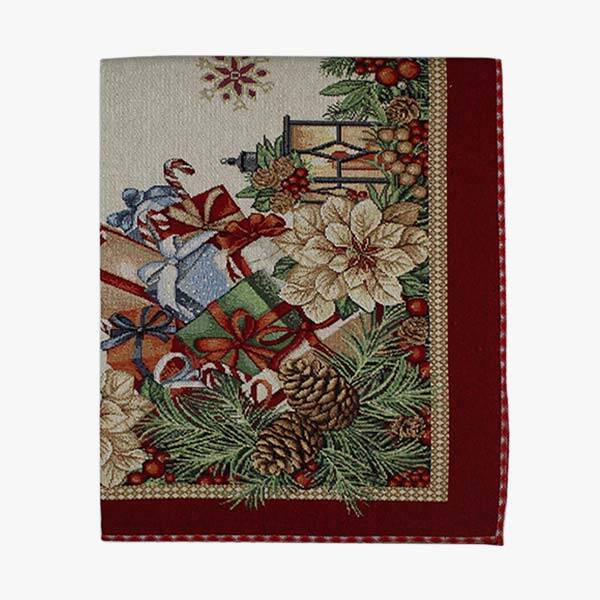 Il motivo con ricami natalizi conferisce un’eleganza tradizionale che si integra perfettamente con l’atmosfera natalizia.