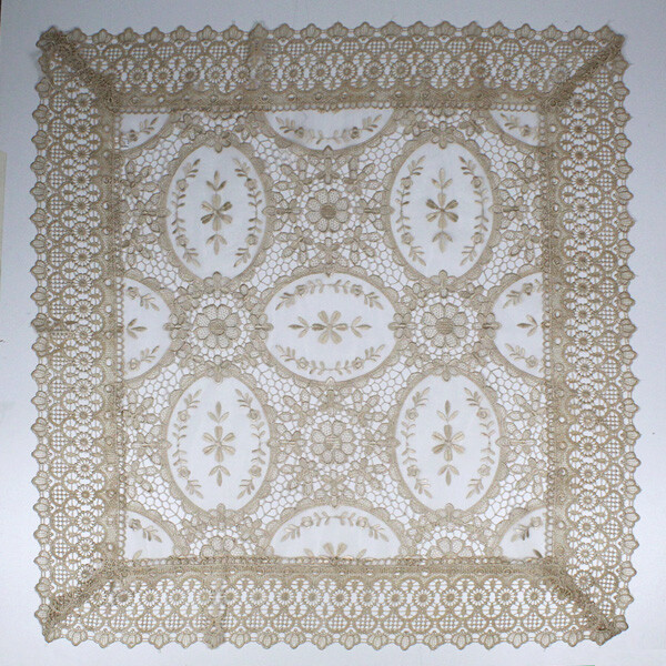 Centrotavola quadrato con ricamo su base in velo.