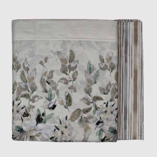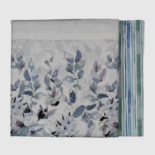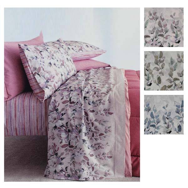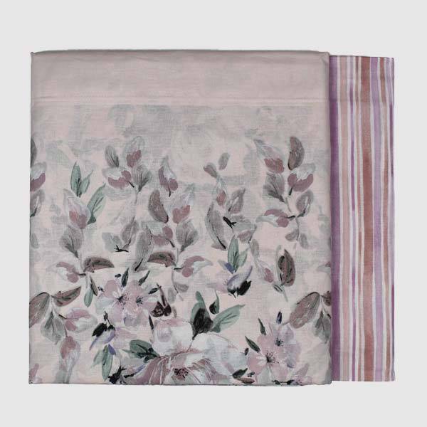 Lenzuolo sopra con stampa floreale, sotto coordinato con disegno a righe.
