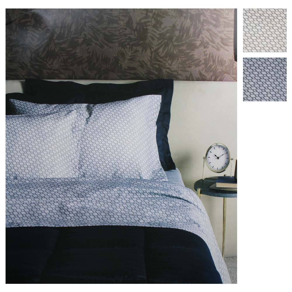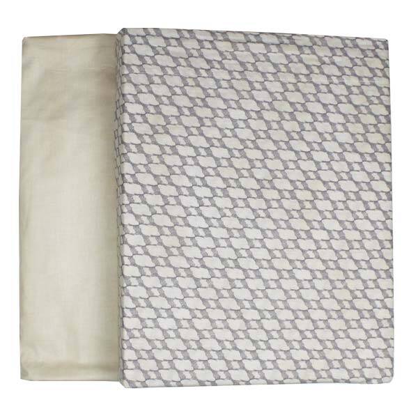 Lenzuolo sopra con stampa moderna, sotto coordinato in tinta unica.