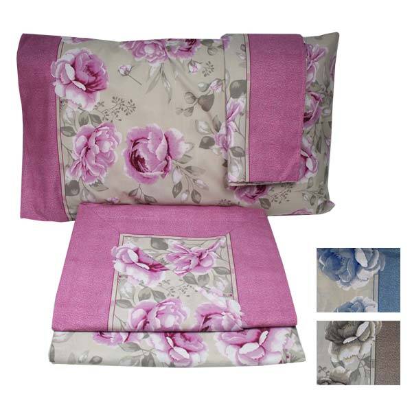 Completo letto matrimoniale composto da lenzuolo sotto con angoli, lenzuolo sopra e due federe.