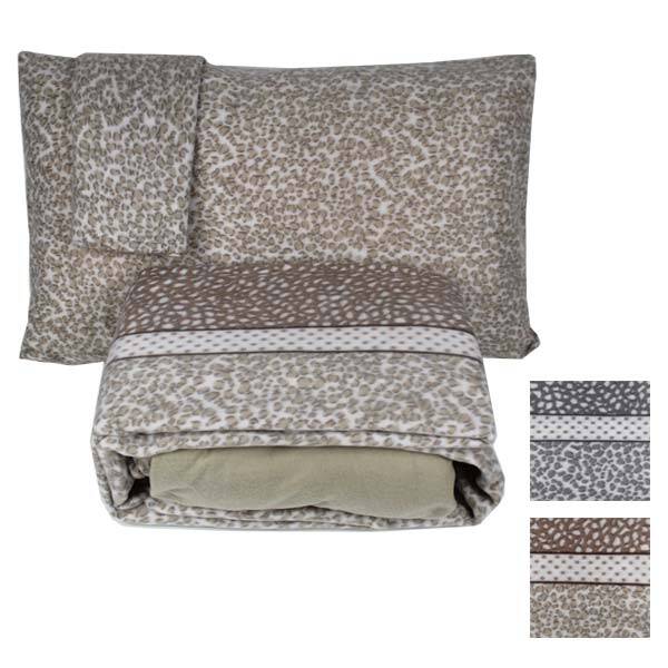 Completo letto Matrimoniale composto da lenzuolo sotto, sopra e due federe. Realizzato in morbido pile Thermal soffice e caldo, sopra e federe in fantasia e sotto in tinta unica.