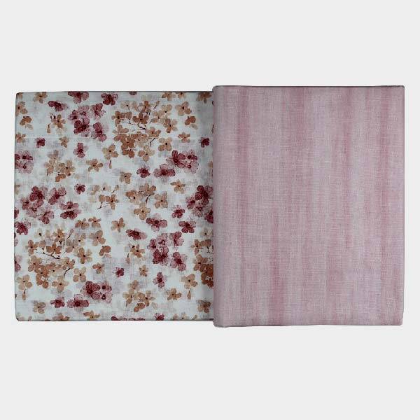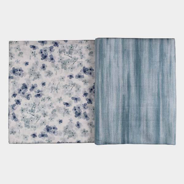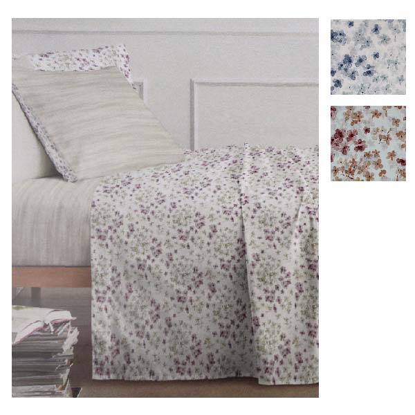 Lenzuolo sopra con stampa floreale, sotto coordinato con disegno a righe.