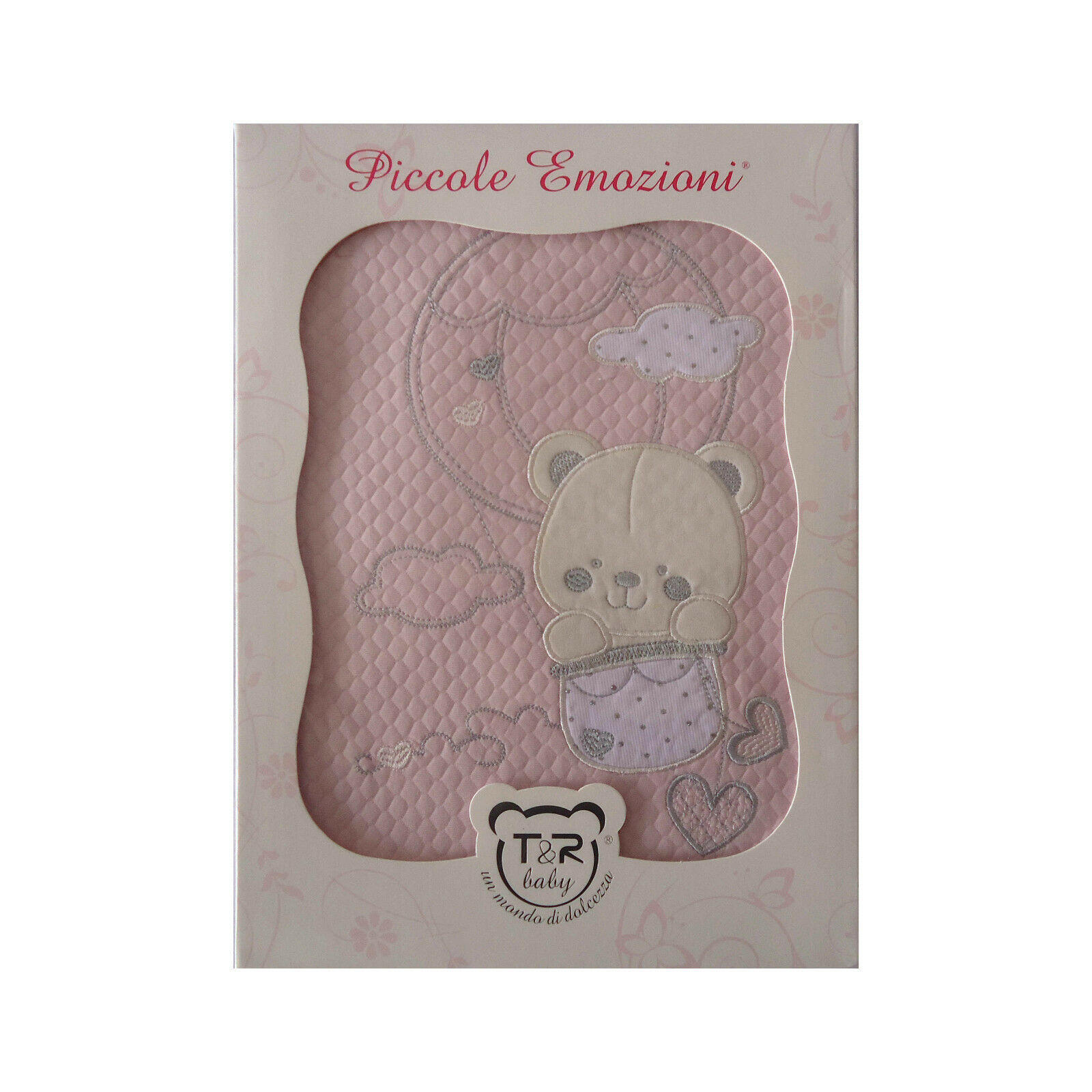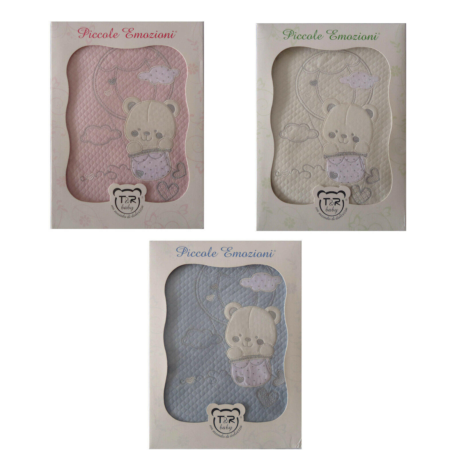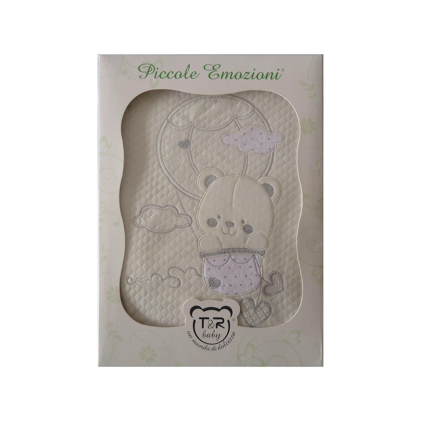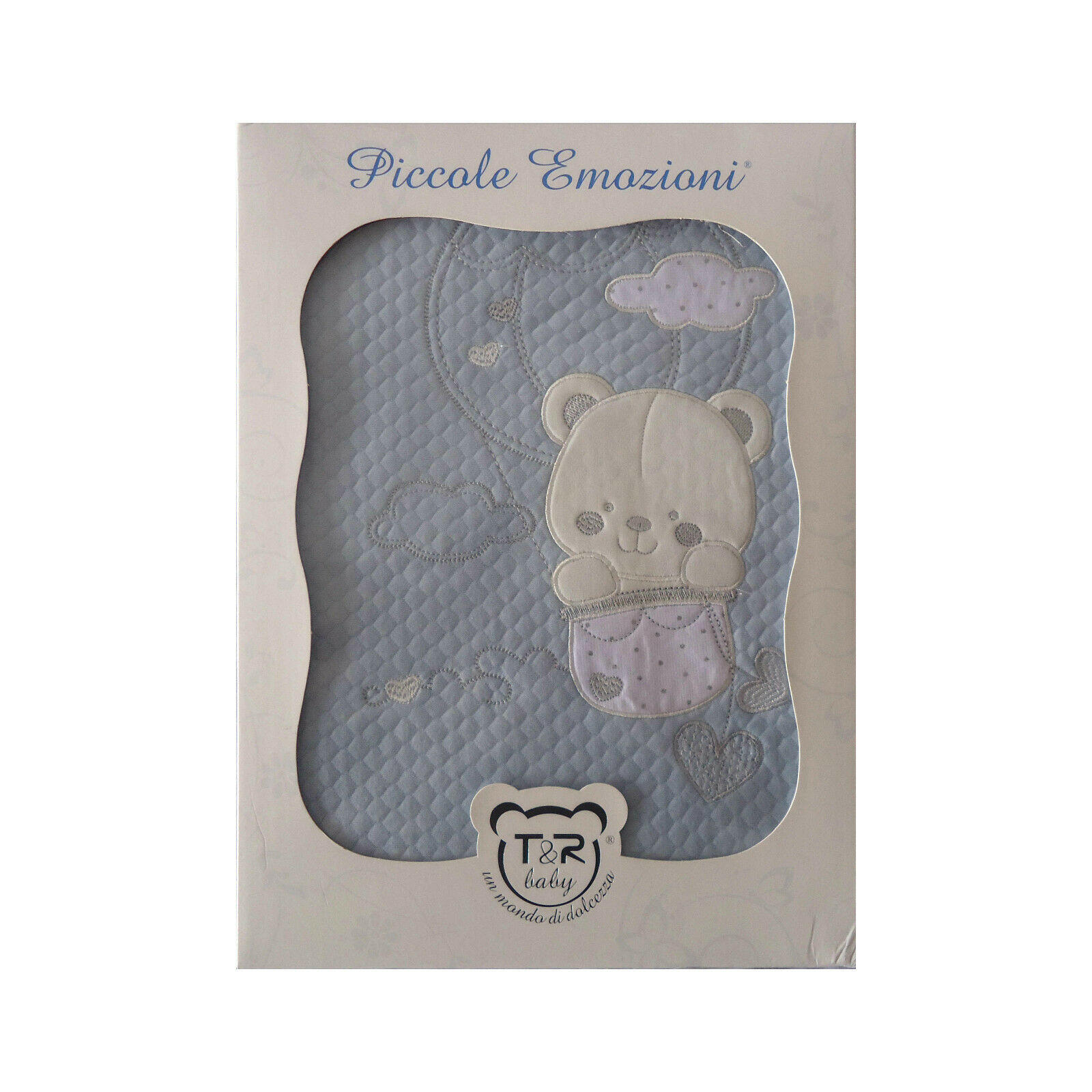 Coperta per lettino in morbido tessuto di cotone con effetto nido d’ ape e ricamo al centro.