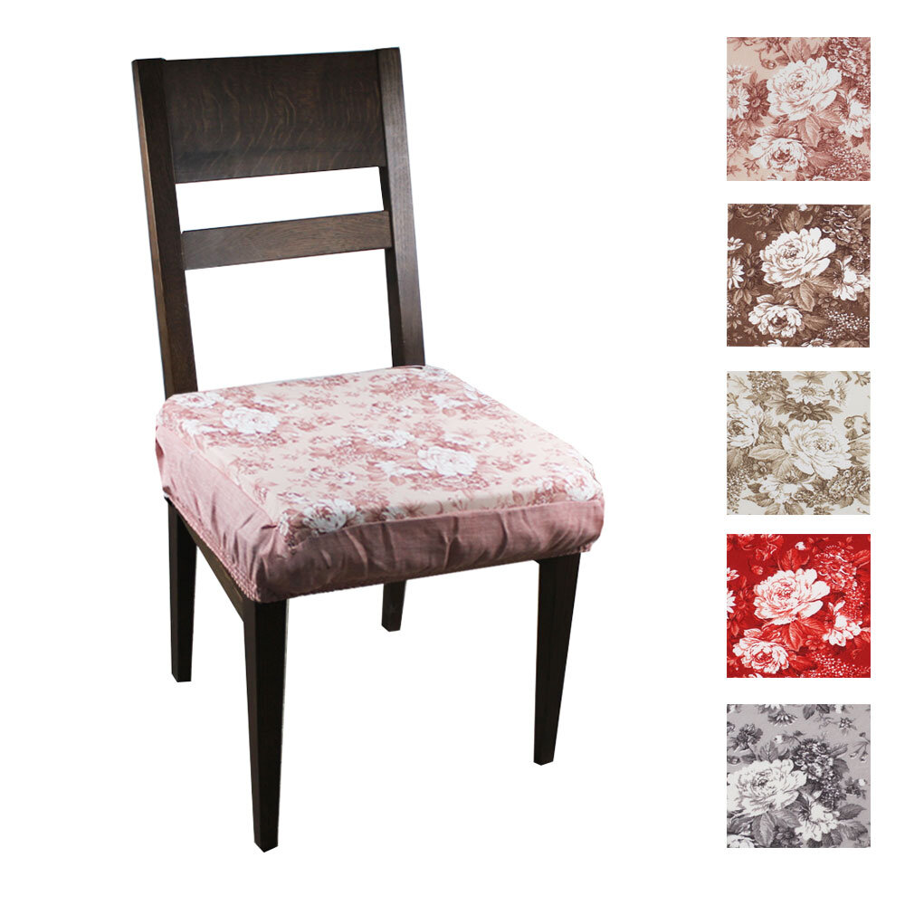 Coppia cuscino per sedia con elastico tutto. Realizzata in tessuto misto cotone di buona qualità stampato con motivo Bouquet