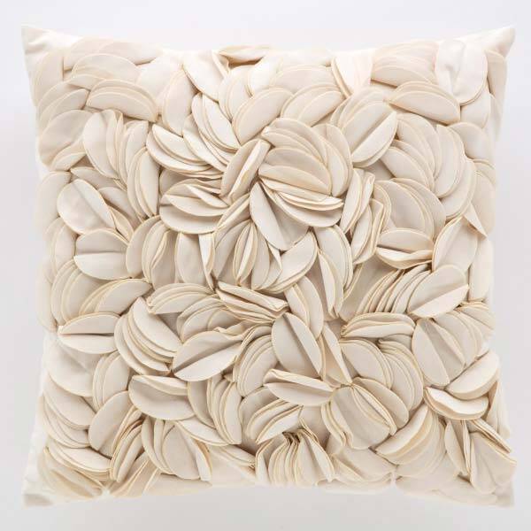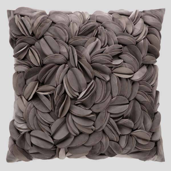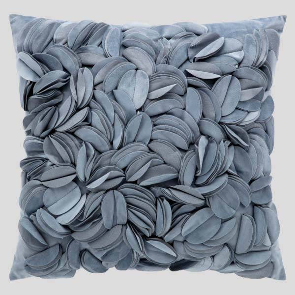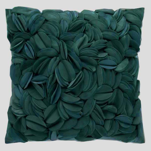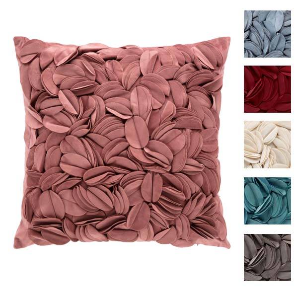 Fodera per cuscino arredo in velluto, fronte con motivo floreale taglio laser in rilievo, retro liscio sempre in velluto.