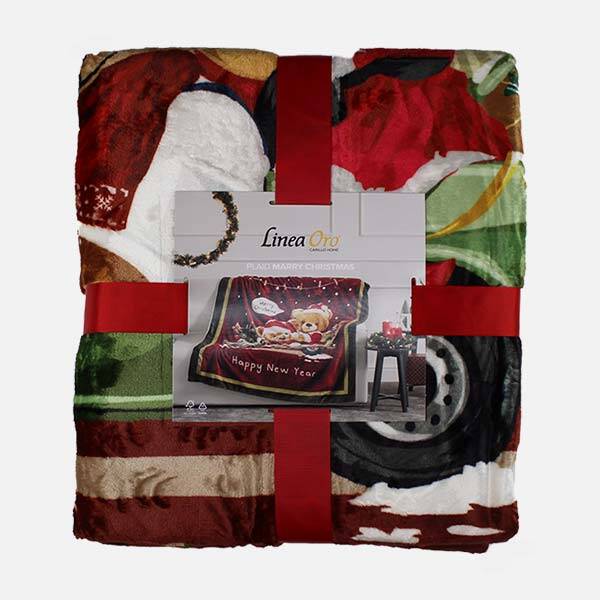 Plaid Marry Christmas con Stampa Digitale di Linea Oro realizzato in tessuto di poliestere