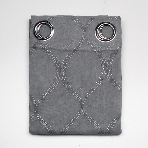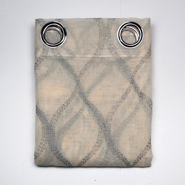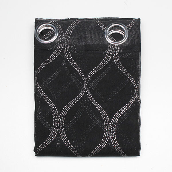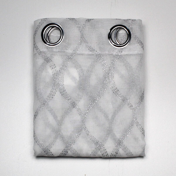 Tessuto a trama sottile. Disegno in rilevo con motivo argento in rilevo. Il tessuto è opaco e semitrasparente.