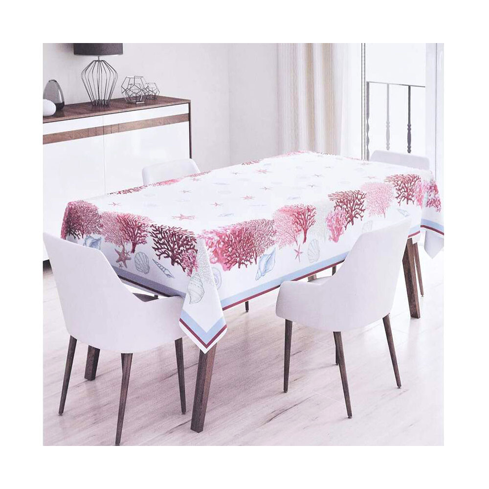 Tovaglia con stampa digitale, disponibile in due misure. Realizzata in tessuto di cotone con stampa piazzata disegno Corallo
