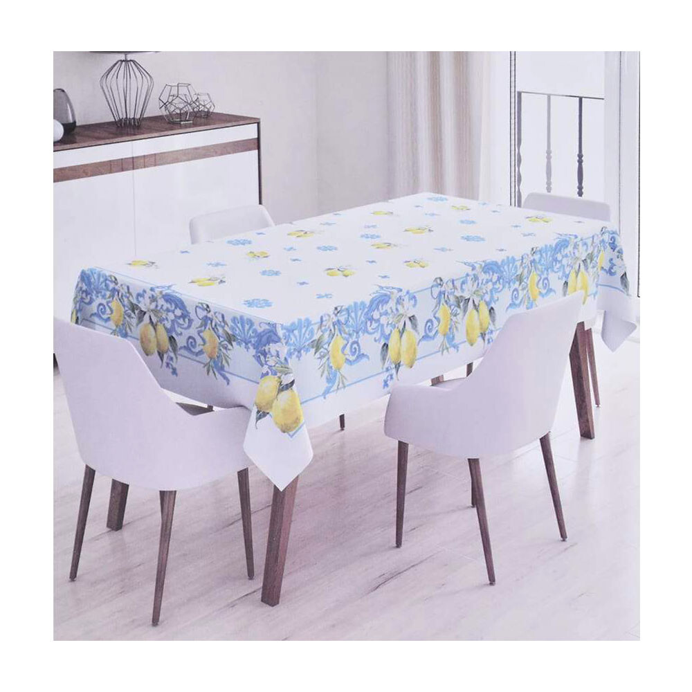 Tovaglia con stampa digitale, disponibile in due misure. Realizzata in tessuto di cotone con stampa piazzata disegno Limoni