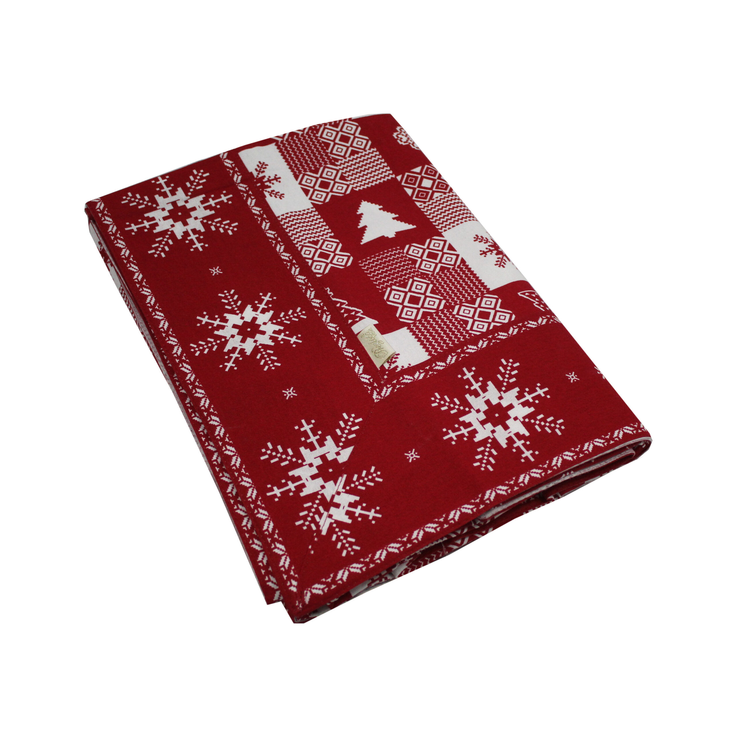 Realizzata con stampa e fascia rosso con decoro applicata.