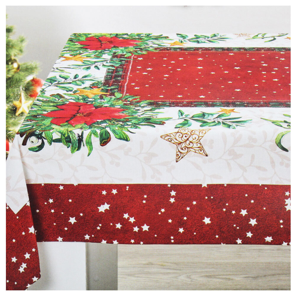 Tovaglia natalizia in tessuto di cotone, trama grossa.